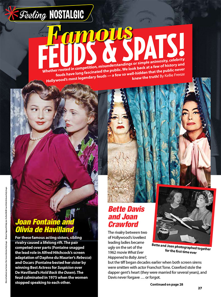 This month we remember famous frenemies and performing partners who weren't pals. We also recall some of the juiciest scandals in Hollywood history and the tabloids who loved to dish the dirt. Plus, catch up with Susan Sarandon, who earned an Emmy nomination for her portrayal of sloe-eyed beauty Bette Davis in the FX series Feud: Bette and Joan.